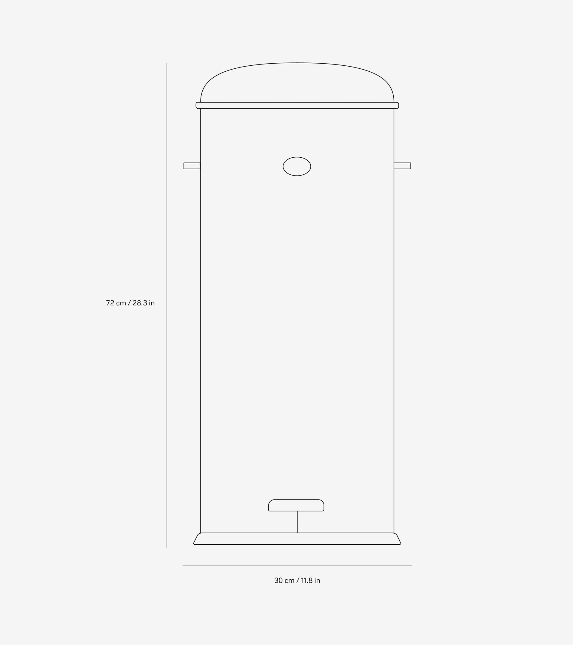 The Vipp17 pedal bin is a 30-litre waste bin and the largest of the Vipp bins. It is equipped with a damper mechanism for smooth closing of the lid, along with a rubber ring that ensures an airtight closure. The body is manufactured from either powder-coated steel or stainless steel, concealing a removable inner bin made of galvanised steel. Additionally, a rubber ring at the base safeguards sensitive surfaces.