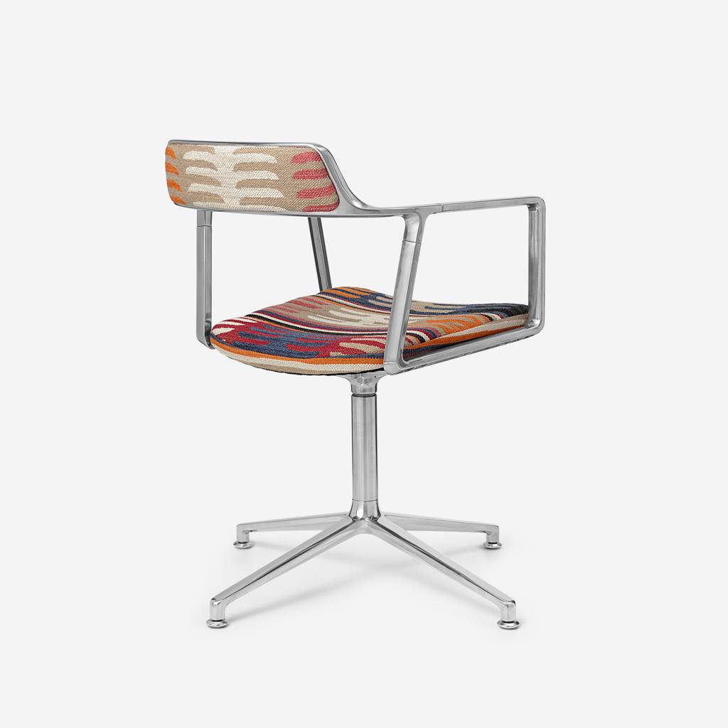 Criada para a pousada Vipp Todos Santos, no México, esta edição especial da Cadeira Giratória Vipp apresenta um vibrante tecido jacquard da conceituada casa têxtil francesa Pierre Frey. Selecionado pelas suas cores vibrantes e texturas ricas, o design capta o espírito vibrante do México. As riscas gráficas bayadère criam um contraste marcante com a estrutura industrial de alumínio da cadeira, criando uma peça marcante que combina a arte com um artesanato duradouro.